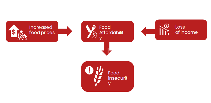 The combination of increased food prices and loss of income affected foodaffordability for the urban poor